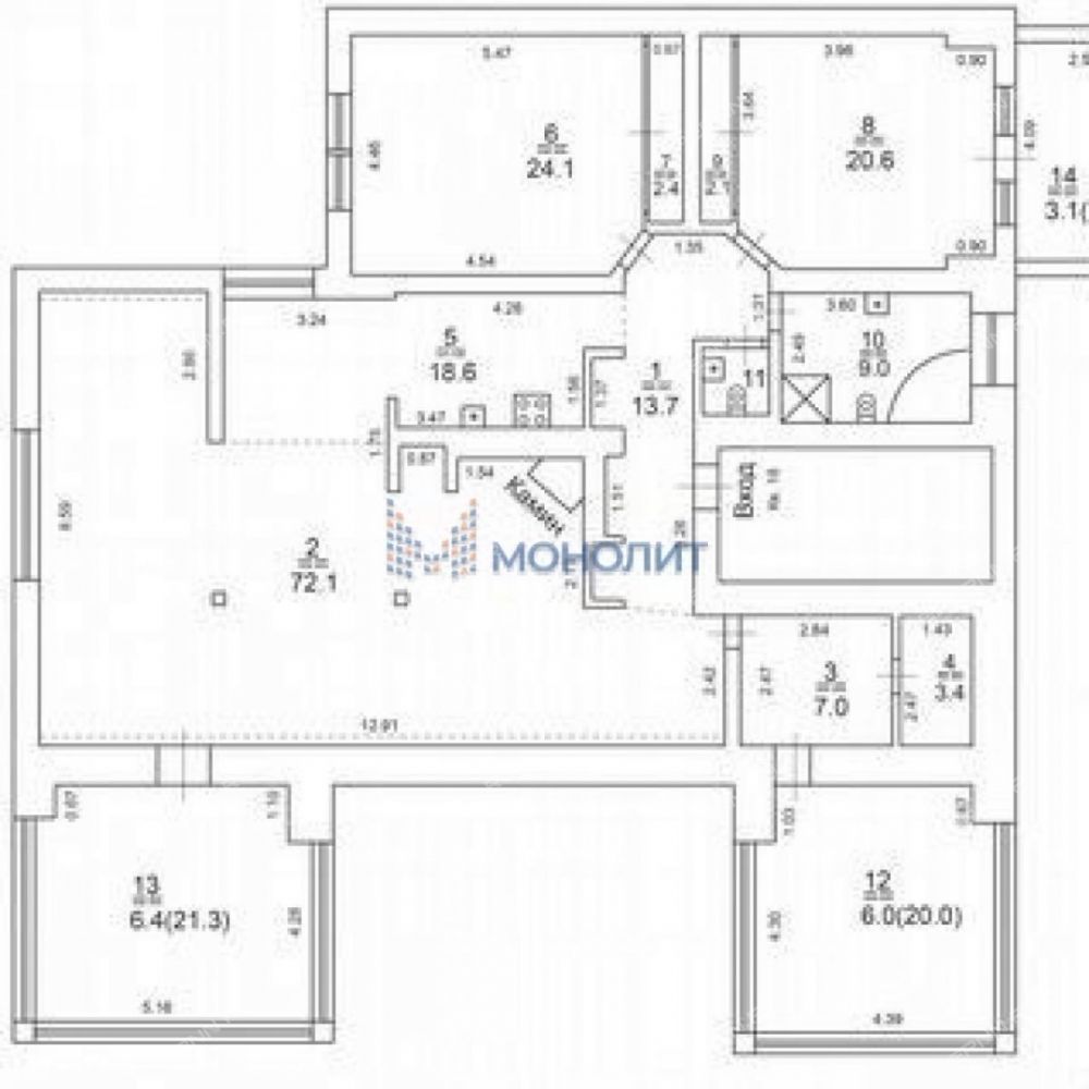 | Высота потолков | 3,1 м (средняя) |