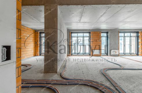 Квартира площадью 130,2 кв. м расположена на 4 этаже 6-этажного дома. Главные особенности — высота потолков 3,35 метра и витражное остекление. Благодаря этому в комнатах всегда много воздуха и естественного света.