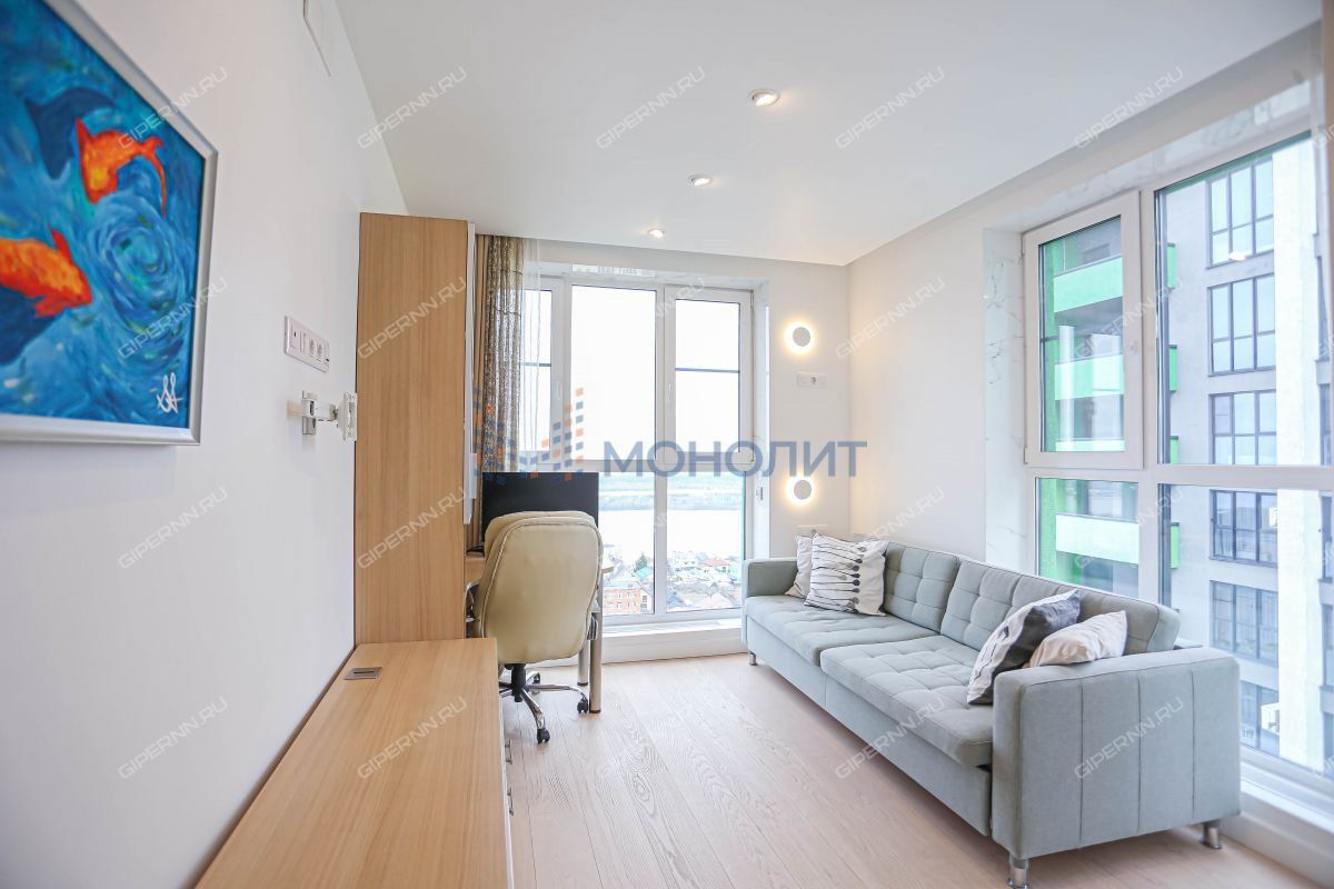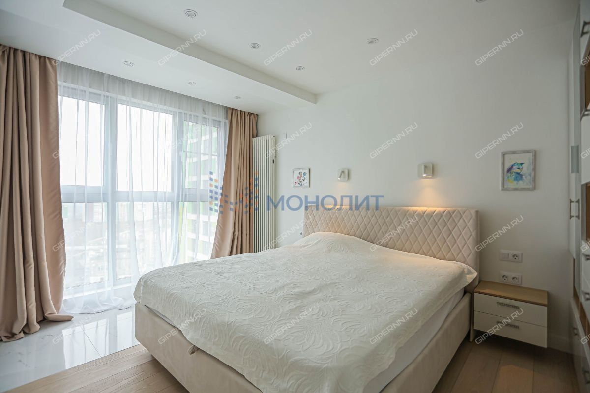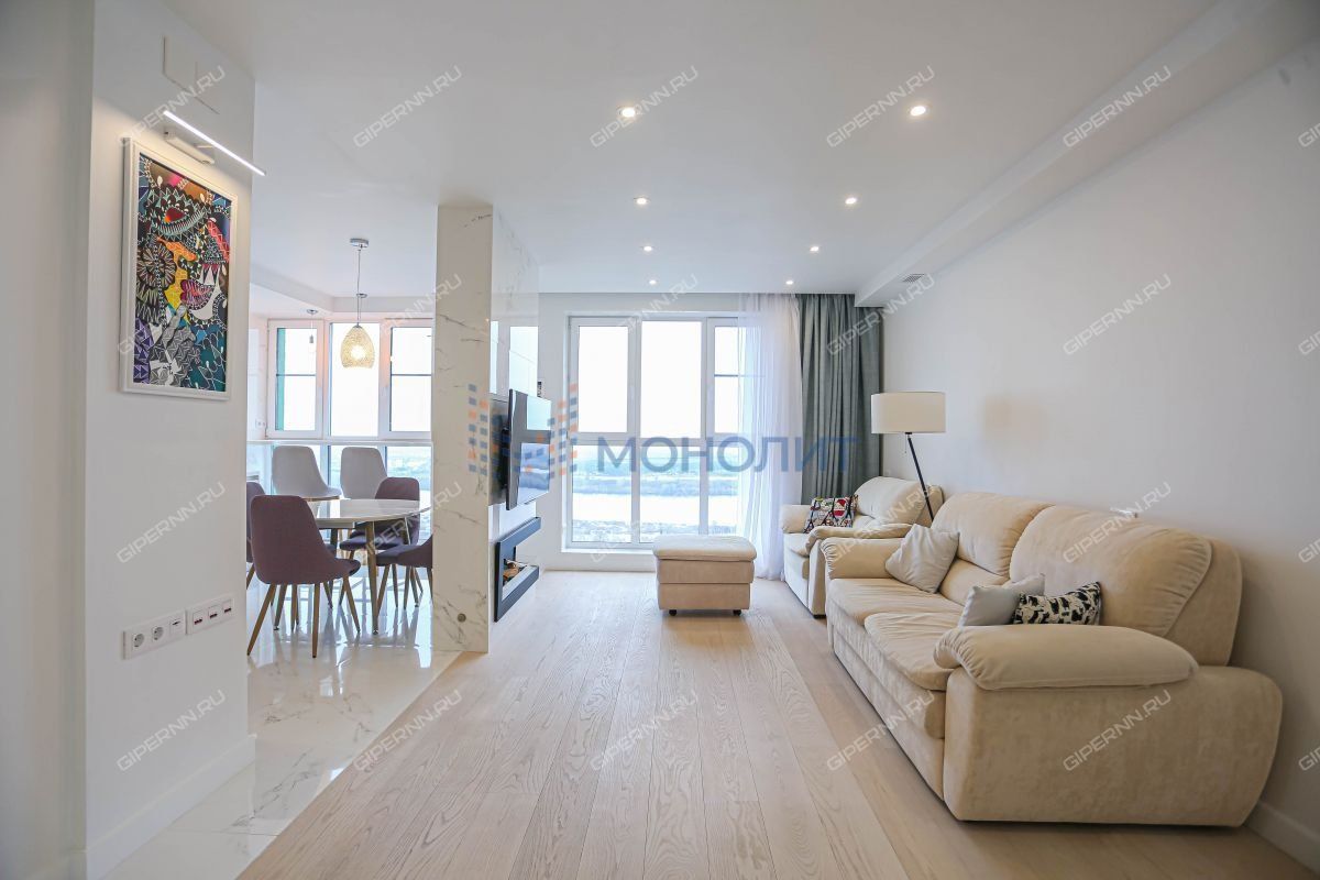 Номер объекта: 1847519. Нижегородский район, улица Родионова. Продаётся уникальная трехкомнатная квартира на 21‑м этаже с панорамным видом на Волгу в ЖК Мегаполис. Интерьер квартиры создан по индивидуальному дизайнерскому проекту с использованием премиальных материалов и современных технологий. Квартира обустраивалась для себя — каждая деталь продумана до мелочей.