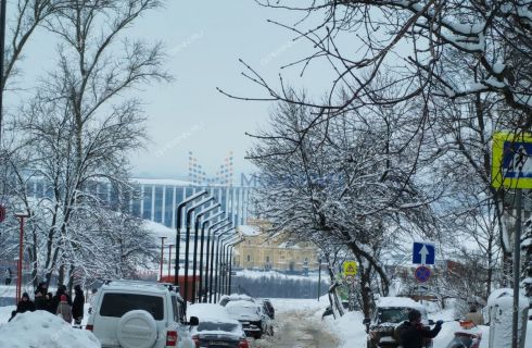 Из окна видна Нижегородская ярмарка, стадион, набережная.