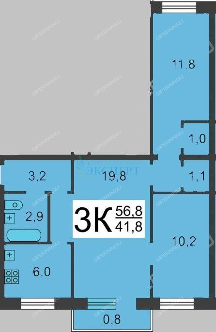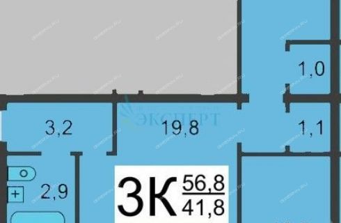 Площадь | 56,8 / 41,8 / 6 |