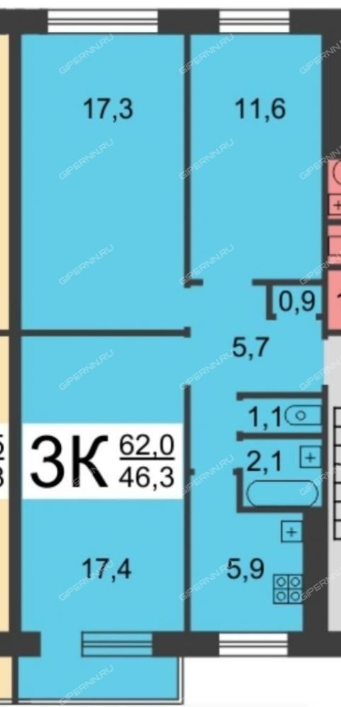 | Комнат | 3 комнаты |