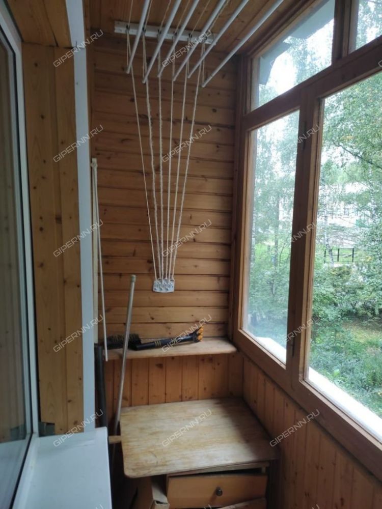 Балкон отделан деревом, застеклен.