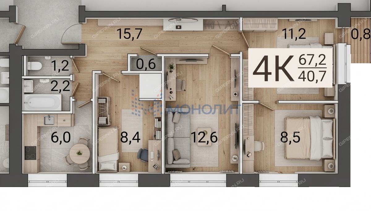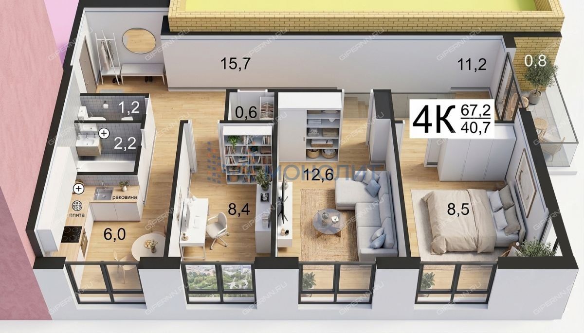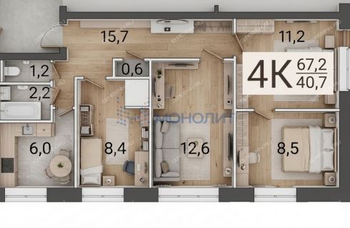 Площадь: 67,2 м², удобная планировка.