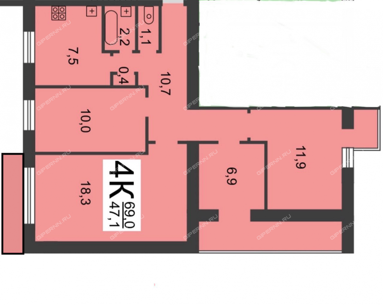| Комнат | 4 комнаты |
