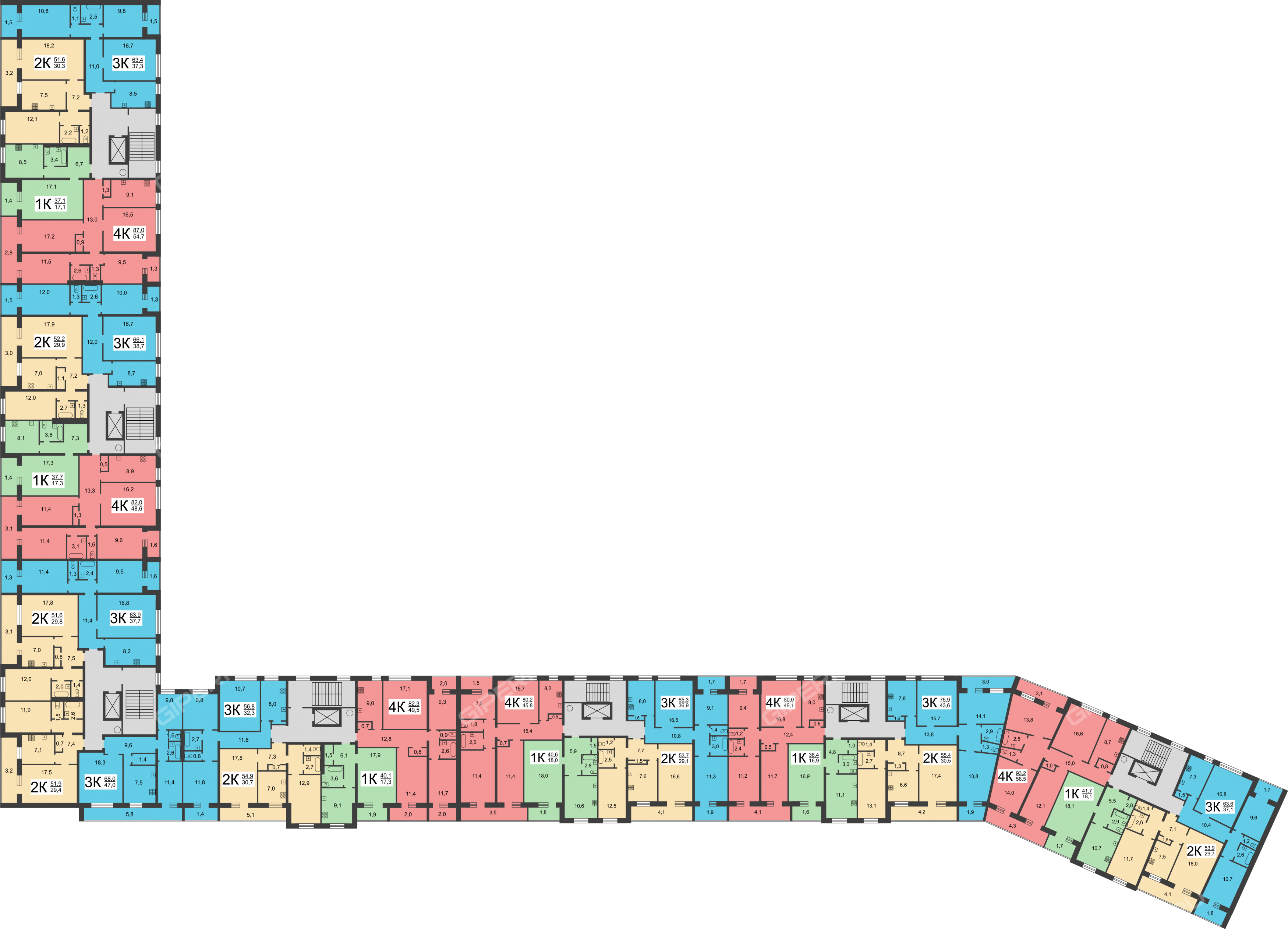 | Площадь | 77,3 / 49,2 / 9 |