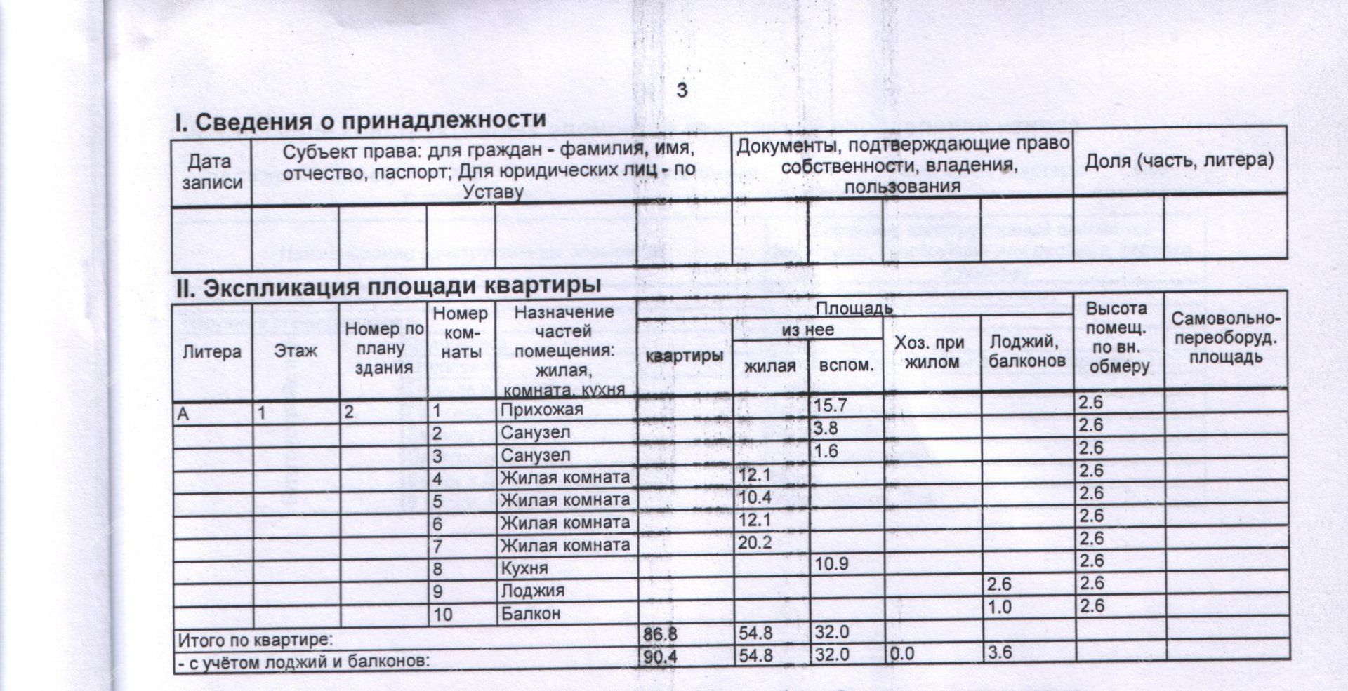| Площадь | 90,4 / 54,8 / 10,9 |