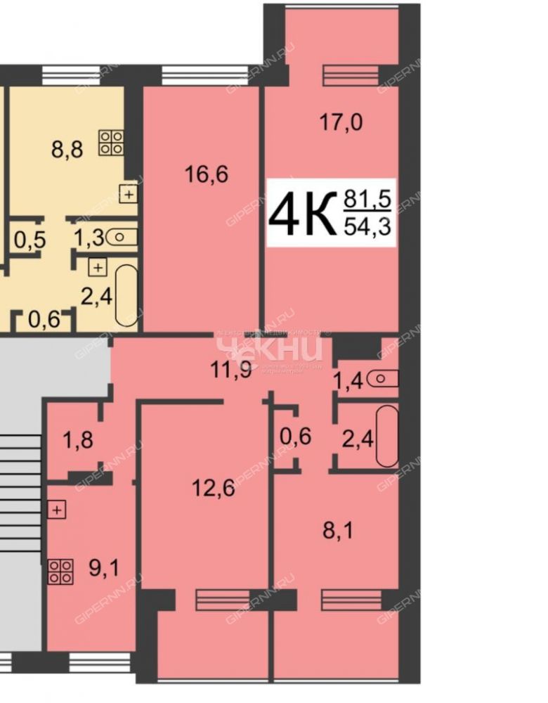 | Комнат | 4 комнаты |