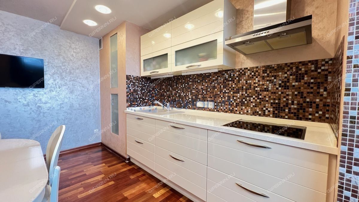 Планировка: три спальни и гостиная 20 м². Общая площадь — 86 м², жилая — 51 м², кухня — 7,6 м². Один санузел. В квартире выполнен дизайнерский ремонт. Остаётся вся встроенная мебель и техника. Установлены три кондиционера. Из двух лоджий есть люки с лестницей на технический этаж — можно использовать как дополнительные места хранения.