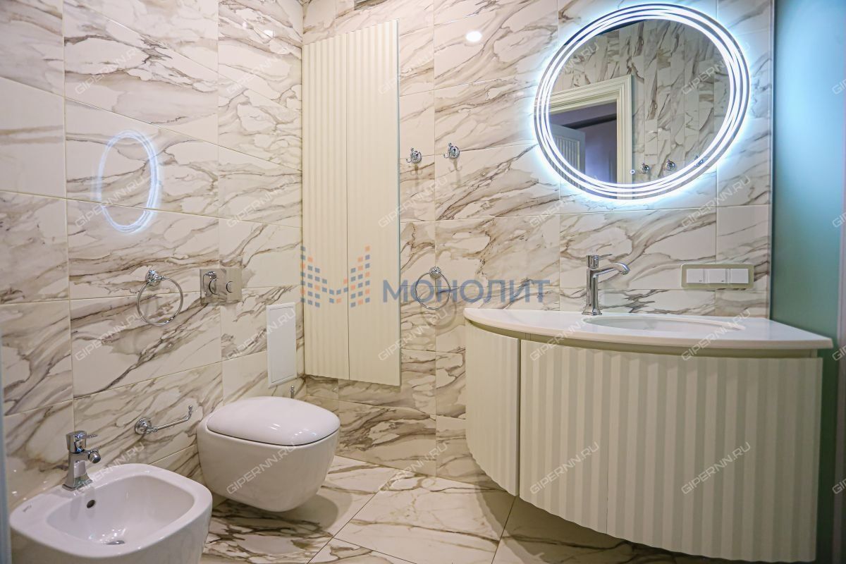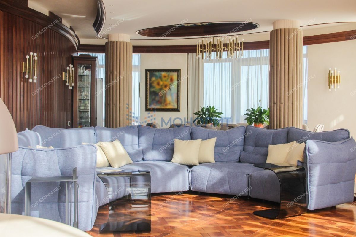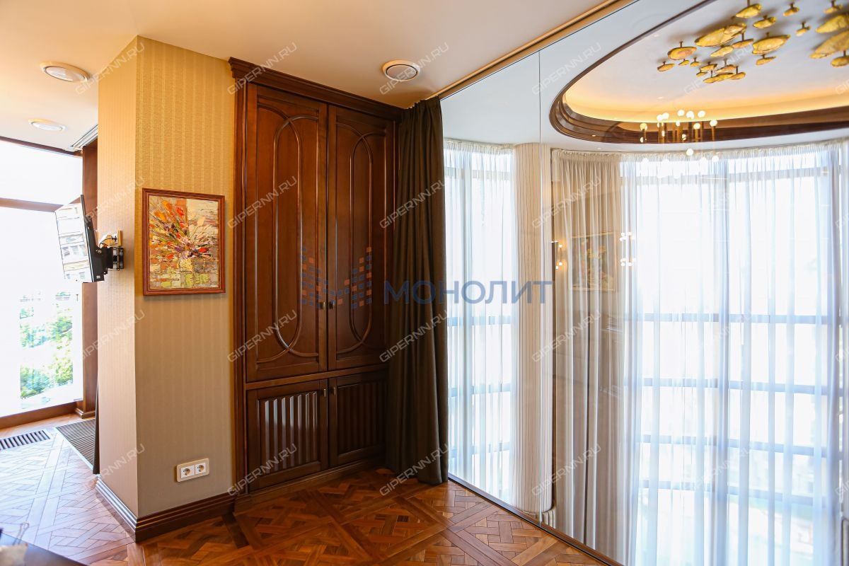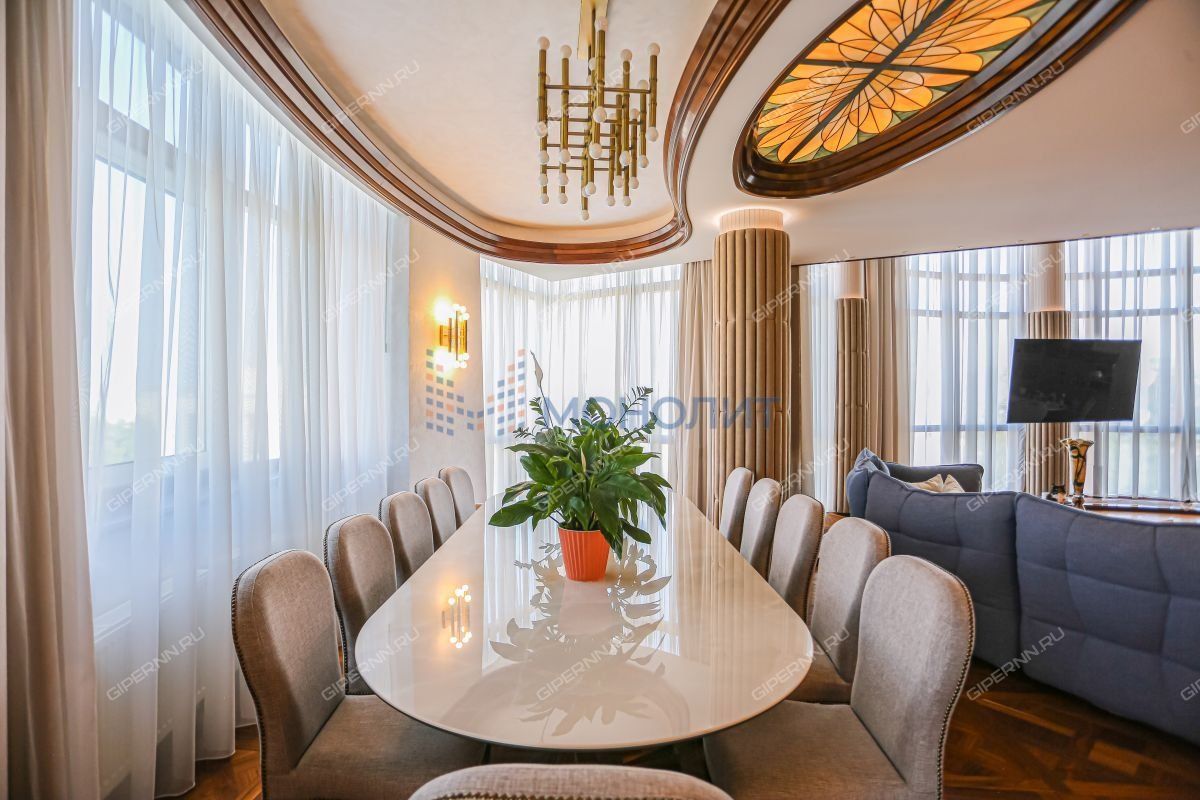 Уникальная 4-х комнатная двухуровневая видовая квартира, площадью 231м² на 6 и 7 этажах элитного дома (с лифтом) в историческом центре Нижнего Новгорода по улице Сергиевская, д. 8 в Нижегородском районе. Рядом улицы Гоголя, Ильинская, Нижегородская, пер. Плотничный, наб. Федоровского и Зеленский съезд.