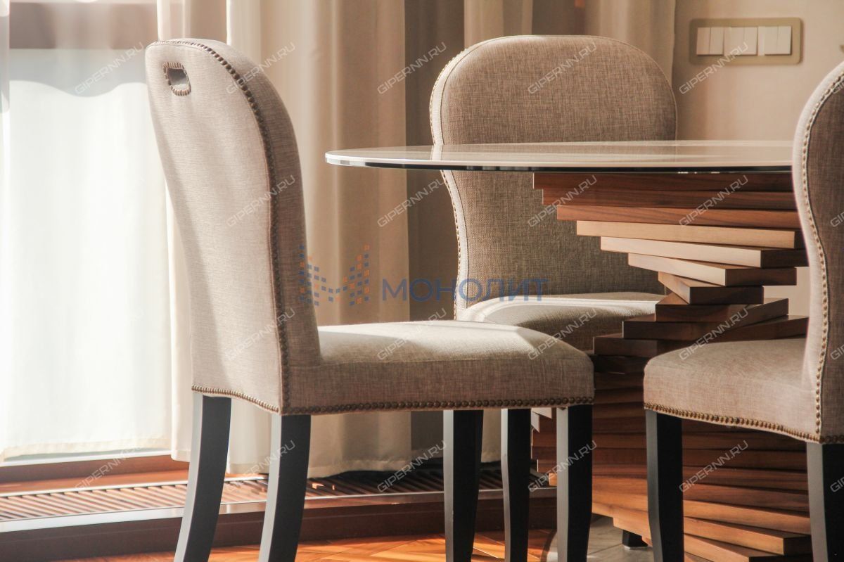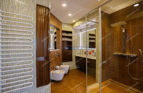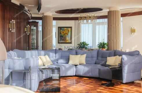 Просторная квартира продается с ремонтом, выполненным по авторскому дизайн-проекту с применением эксклюзивных материалов. В жилых зонах паркетная доска благородного темного цвета, рифмующаяся с обилием массива дерева на стенах и потолке, что не утяжеляет интерьер, а делает его утонченным и живым. Второй свет в гостиной дарит квартире безграничный объем воздуха, а огромные панорамные окна на всю стену в два этажа пропускают столько света, что даже в самую пасмурную погоду нет необходимости в искусственном освещении, сценариев которого на вечернее время суток предостаточно.