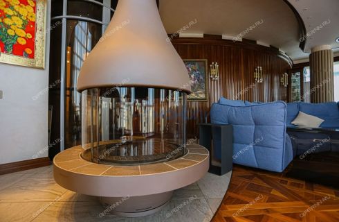 - гостиная с камином, площадью 57 кв м, к которой прилегает просторная кухня с одной стороны и столовый зал с другой.