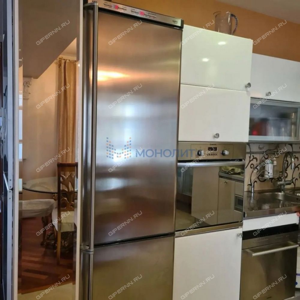 Квартира выполнена в двухуровневой планировке. Все 5 комнат изолированы, жилая площадь — 98 м². Просторная кухня (26 м²) оснащена встроенной техникой: холодильник, духовой шкаф и посудомоечная машина уже ждут новоселья. Два санузла (с ванной и душевой кабиной), бойлер и стиральная машина делают быт абсолютно комфортным.