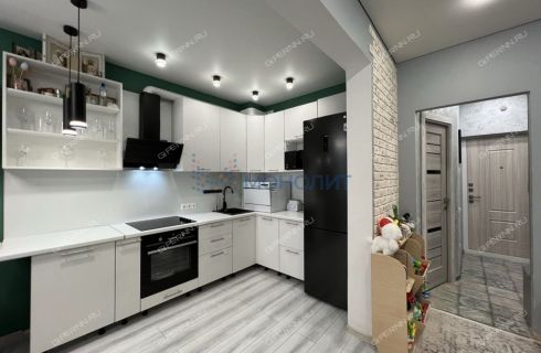 Площадь квартиры-студии как у полноценной однокомнатной квартиры 34.00 кв.м плюс лоджия 3,62 кв.м, всего с лоджией 37,62 кв.м. В квартире выполнен современный ремонт с использованием качественных материалов. Во всех помещениях натяжные белоснежные потолки, на полу в комнате и кухне ламинат, ванная в плитке, выделена большая душевая зона с переключением смесителя на тропический душ. Стильные светильники дополняют интерьер. Пространство комнаты позволяет расставить полноценную двуспальную кровать, а также диван. Для зонирования пространства комнаты и выделения спальной зоны и зоны отдыха или приема гостей предусмотрена декоративная перегородка. В квартире остается кухонный гарнитур с вытяжкой и со встроенными варочной панелью и духовым шкафом. Из кухни выход на просторную лоджию – дополнительный уголок для отдыха и хранения габаритных вещей. При входе оборудована большая гардеробная с отдельным входом.