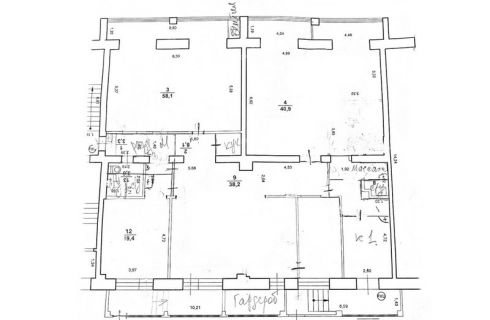 Общая площадь 252 кв.м. По планировке помещение состоит из двух залов и четырех санузлов. Два отдельных входа со двора.