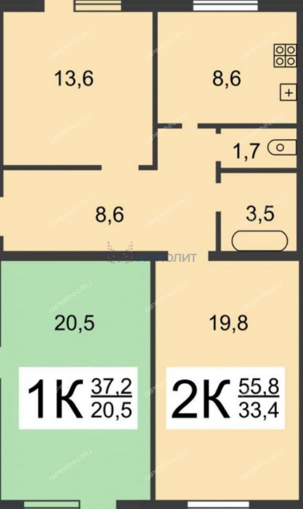 Площадь | 56 м² |