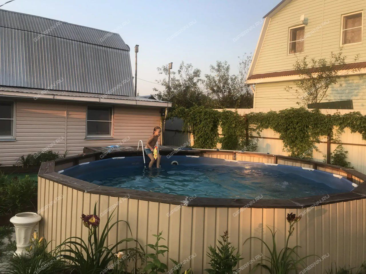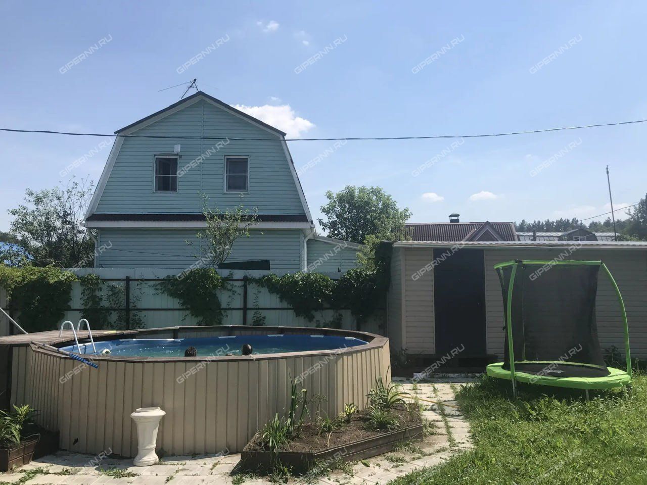 Территория участка оснащена бассейном, детской игровой зоной, качелями и батутом, теннисный столом на веранде.