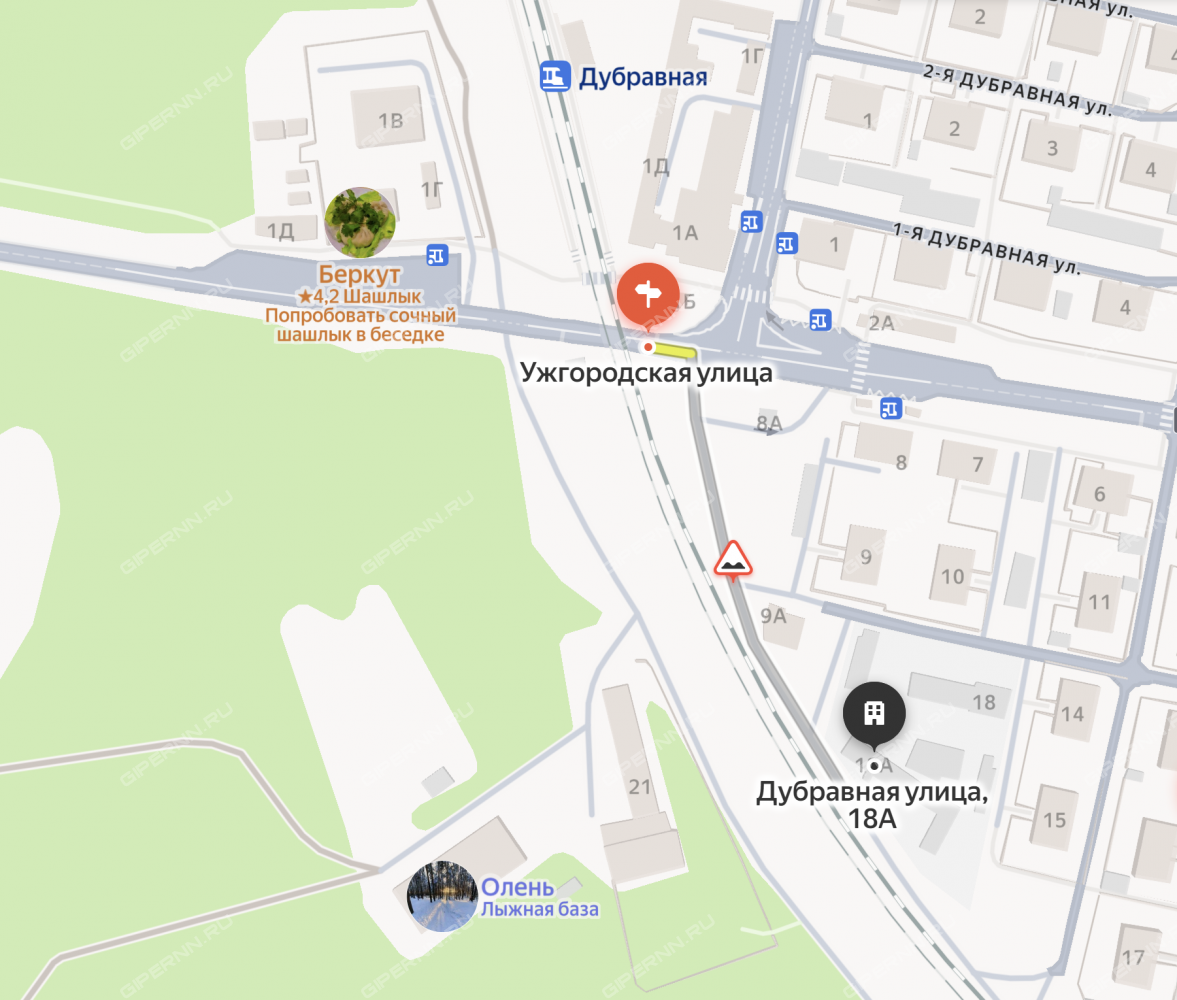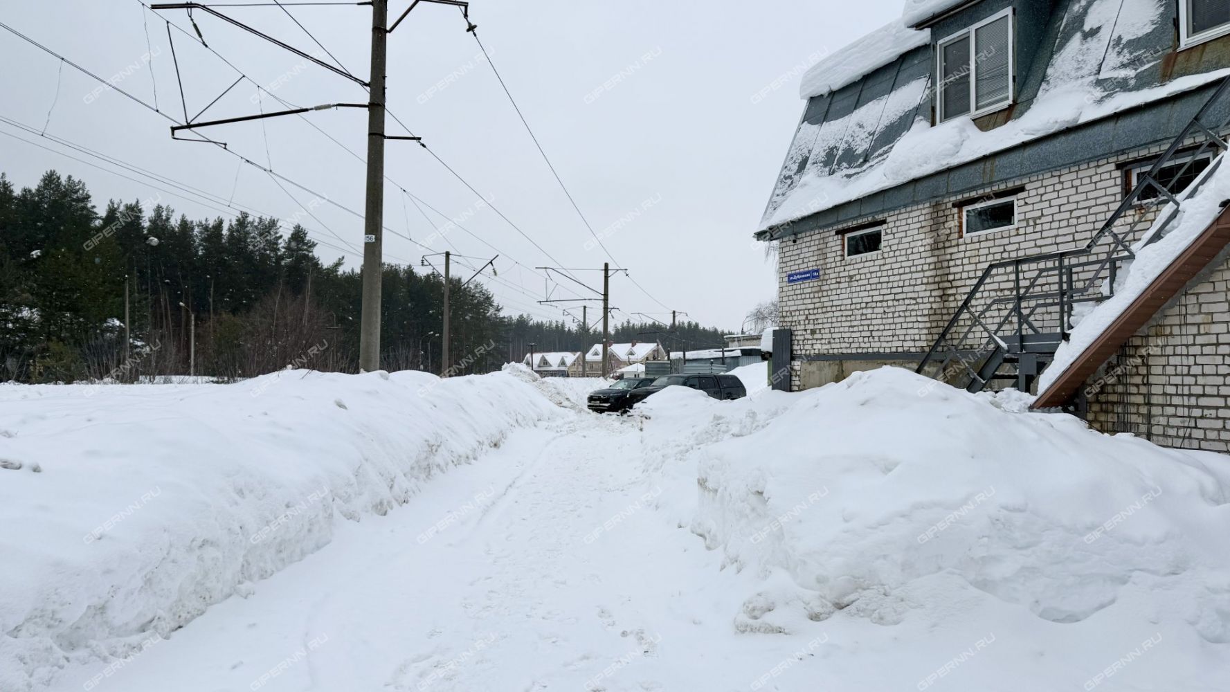 Здание расположено в 1 минуте (170 м) от въезда в город со стороны г. Балахна, около железнодорожного переезда и станции "Дубравная". Подъездная дорога со стороны ул. Ужгородская грунтовая (всего 170 м), зимой очищается.