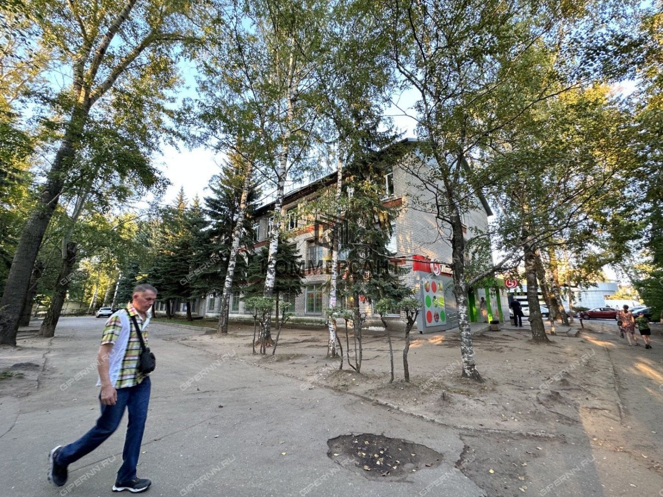 Отдельно стоящее нежилое здание с арендаторами в «центре жизни» большого жилого массива. Земля под зданием – в собственности, все коммуникации центральные.