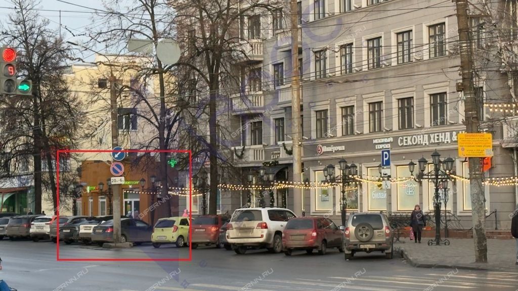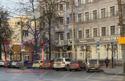Первая линия домов, высокий автомобильный и пешеходный трафик, густонаселенный жилой массив.
