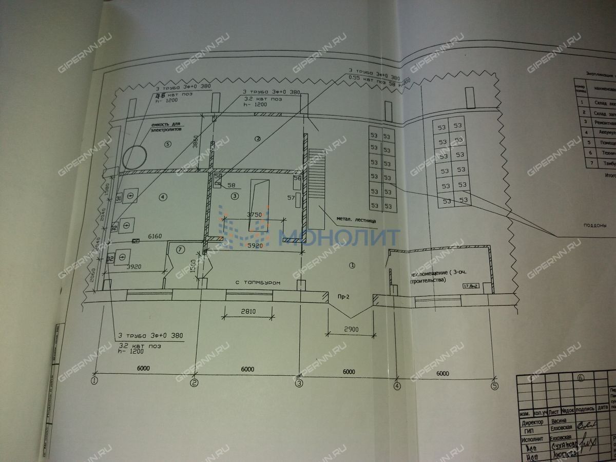 Высота потолка центральной части здания 300 м.кв. составляет 12 метров. Толщина бетонного пола 0,5 метров, выдерживает нагрузку до 9 тонн на кв.м.