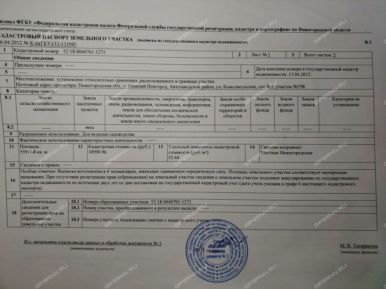 Продажа земельного участка под индивидуальное строительство на ул. КомсомольскаяАвтозаводский район, Нижний Новгород