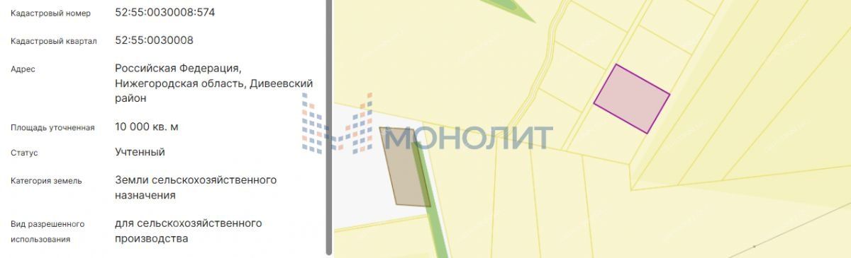 Номер объекта: 1733284. Земельный участок 1 га. в Дивеевском районе (пос. Коврез) - ваш шанс вложить средства в перспективную землю!Предлагаем к приобретению земельный участок в экологически чистом и динамично развивающемся Дивеевском районе Нижегородской области (пос. Коврез).Кадастровый номер - 52:55:0030008:574Почему это выгодное вложение?Отличное расположение — Дивеевский район славится экологической чистотой, развитой инфраструктурой и растущим туристическим потоком.Готовность к сделке — участок поставлен на кадастровый учёт, документы в порядке.Для чего подойдёт участок?Сельское хозяйство — выращивание сельхозкультур, организация КФХ или ЛПХ.Туризм и отдых — строительство баз отдыха, гостевых домов, кемпингов (близость к Дивеево обеспечивает стабильный поток гостей).Инвестиции — земли в Дивеевском районе стабильно растут в цене.Ключевые преимущества локацииЭкология — чистый воздух, природные водоёмы, отсутствие промышленных предприятий.Инфраструктура — удобные подъездные пути, доступ к электричеству и воде.Транспортная доступность — близость к основным дорогам и населённым пунктам.Туристический потенциал — Дивеево привлекает тысячи паломников и туристов ежегодно.Что вы получаете?Юридическую чистоту — участок имеет кадастровый номер, проверен на обременения.Гибкость использования — земли подходят для разных целей (сельхоз, туризм, жильё).Перспективу роста стоимости — район активно развивается, цена на землю будет увеличиваться.Возможность масштабирования — крупные участки (до 53 га) позволяют реализовать масштабные проекты.Не упустите шанс приобрести землю в одном из самых перспективных районов Нижегородской области!Свяжитесь с нами, чтобы:получить детальный обзор доступных участков;уточнить условия покупки;записаться на осмотр. Звоните прямо сейчас — предложение ограничено!