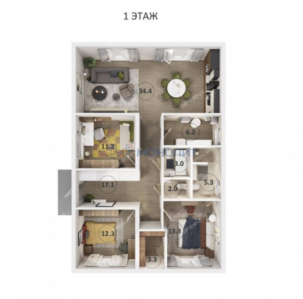 Номер объекта: 1844043. Продается одноэтажный дом 115 м² в КП «Изумрудное», Кстовский район, п. Селекция, 13 км от Нижнего Новгорода. Закрытый охраняемый поселок, 3 изолированные спальни, центральные коммуникации и предчистовая отделка white box.В п. Селекция находятся школа и детский сад. В поселке предусмотрены асфальтированный подъезд, уличное освещение, детские площадки, прогулочные зоны, работает собственная управляющая компания. Безопасность обеспечивают круглосуточная охрана, закрытая территория, видеонаблюдение 24/7 с архивом и современная система контроля доступа.Дом одноэтажный, общей площадью 115 м². Планировка включает 4 комнаты, из них 3 изолированные спальни. Дом построен из силикатного белого кирпича с утеплителем и оштукатурен по системе СФТК «Мокрый фасад». Фундамент ленточный, кровля двускатная, покрытие металлочерепица. Установлены окна ПВХ с двухкамерными стеклопакетами.Внутренняя отделка - предчистовая white box: выполнена разводка электрики, штукатурка стен, стяжка пола, установлены радиаторы и теплые полы.Коммуникации центральные: водоснабжение, канализация, электричество, газоснабжение.Подходит для ипотеки и материнского капитала.Позвоните или напишите в чат — отвечу на все вопросы и покажу дом в удобное для вас время.