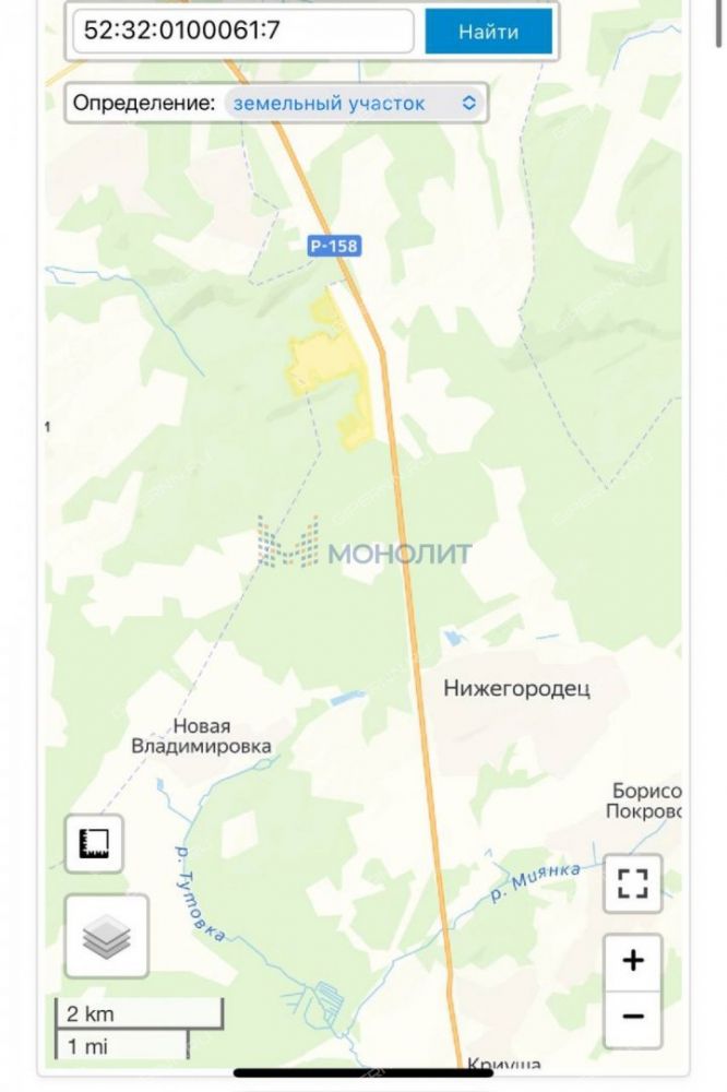 Кадастровый номер земельного участка ( 52:32:0100061:8 и 52:32:0100061:7) , спроектированы 2 варианта межевания. Рядом Нижегородец, Каменки, Шелокша, Кужутки, Инютино, Шелокша)