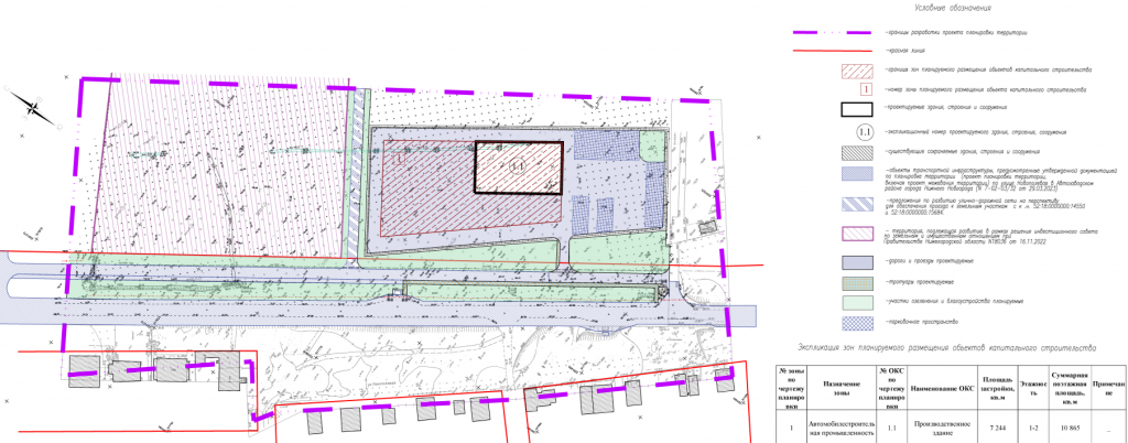 Проект планировки подготовила компания «Геопроект-НН»: документация охватывает территорию площадью почти 9 га. Заказчиком выступило ООО «Вершина». Инвестор планирует построить производственное здание высотой 1–2 этажа и площадью 10,8 тысячи «квадратов».