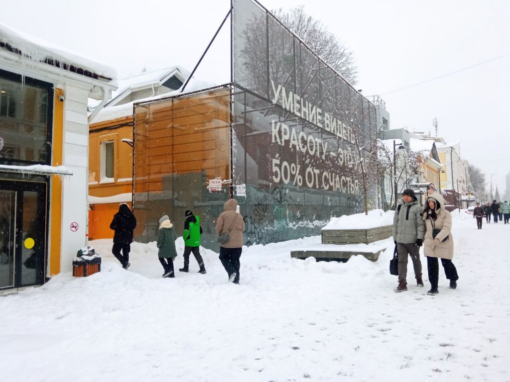 Напомним, в 2022 году старинный дом остался без мезонина на мансардном этаже. Оказалось, что один из собственников разобрал аварийную конструкцию без согласования — управление госохраны ОКН не выдавало ему разрешения. Владелец получил предостережение. В 2024 году здание закрыли фальшфасадом, за которым оно скрывается по сегодняшний день.