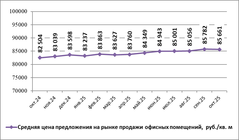По данным Gipernn.ru на рынке продажи офисных помещений Нижнего Новгорода в октябре 2025 года средняя цена предложения составила 85 660,82 руб./кв.м. По сравнению с предыдущим месяцем она понизилась на 0,14%.