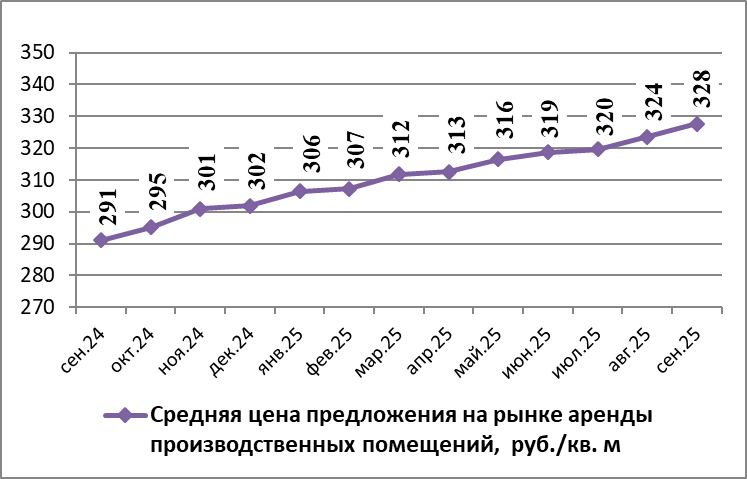 Средняя цена аренды производственных помещений в Нижнем Новгороде в сентябре 2025 года составила 327,59 руб./кв.м. По сравнению с предыдущим месяцем она повысилась на 1,23%.