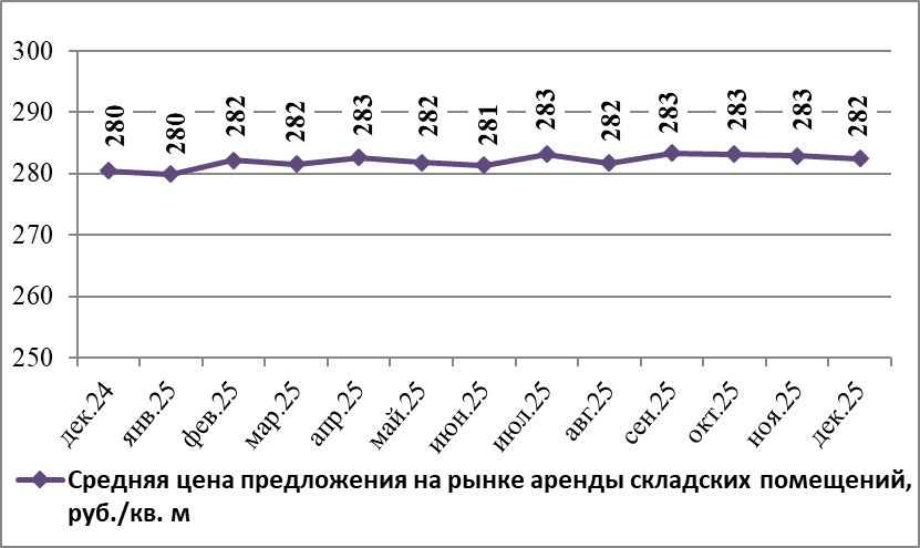 По данным Gipernn.ru на рынке аренды складских помещений в Нижнем Новгороде в декабре 2025 года средняя цена предложения составила 282,49 руб./кв. м. По сравнению с предыдущим месяцем она понизилась на 0,16%.