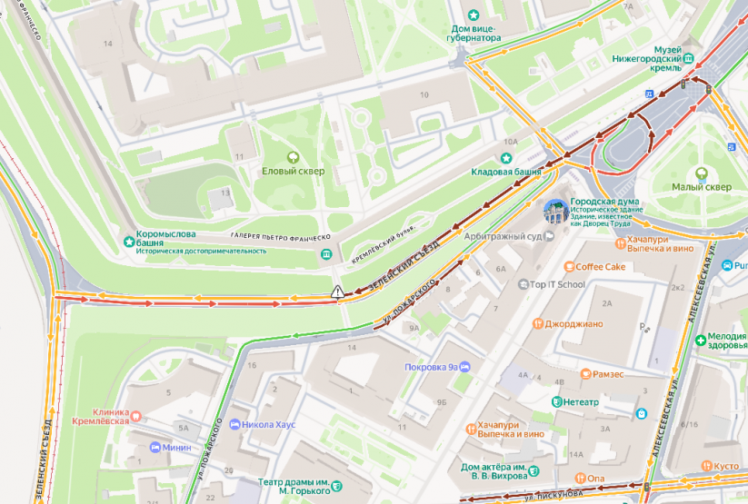 Фотографии оползня появились в соцсетях около двух часов дня. В сервисе «Яндекс. Карты» можно увидеть актуальную ситуацию на Зеленском съезде: на двух полосах образовались пробки. Самые серьезные заторы отмечались на улице Пожарского и от поворота с улицы Варварской. Позже движение перекрыли.
