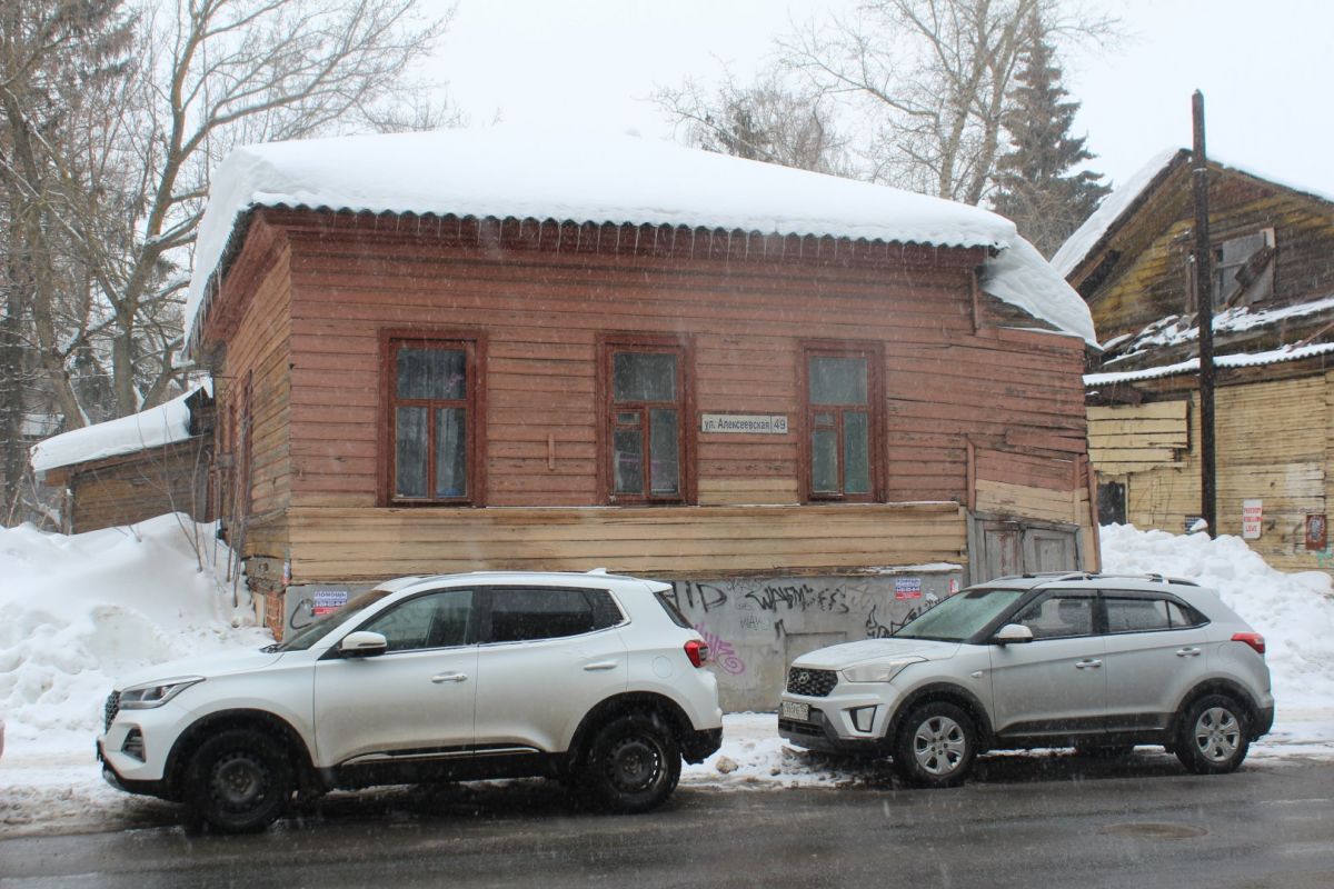 В старых дворах по другую сторону от улицы Большой Покровской тоже немало аварийных зданий, которые решили изымать по реквизиции. Среди них два жилых дома в заповедном Студеном квартале — № 49 и 49а по Алексеевской. Первый является ценным градоформирующим объектом. Сейчас для деревянных одноэтажек, как и для некоторых других зданий в квартале, ищут инвестора, который вовлечет их в деловой оборот.