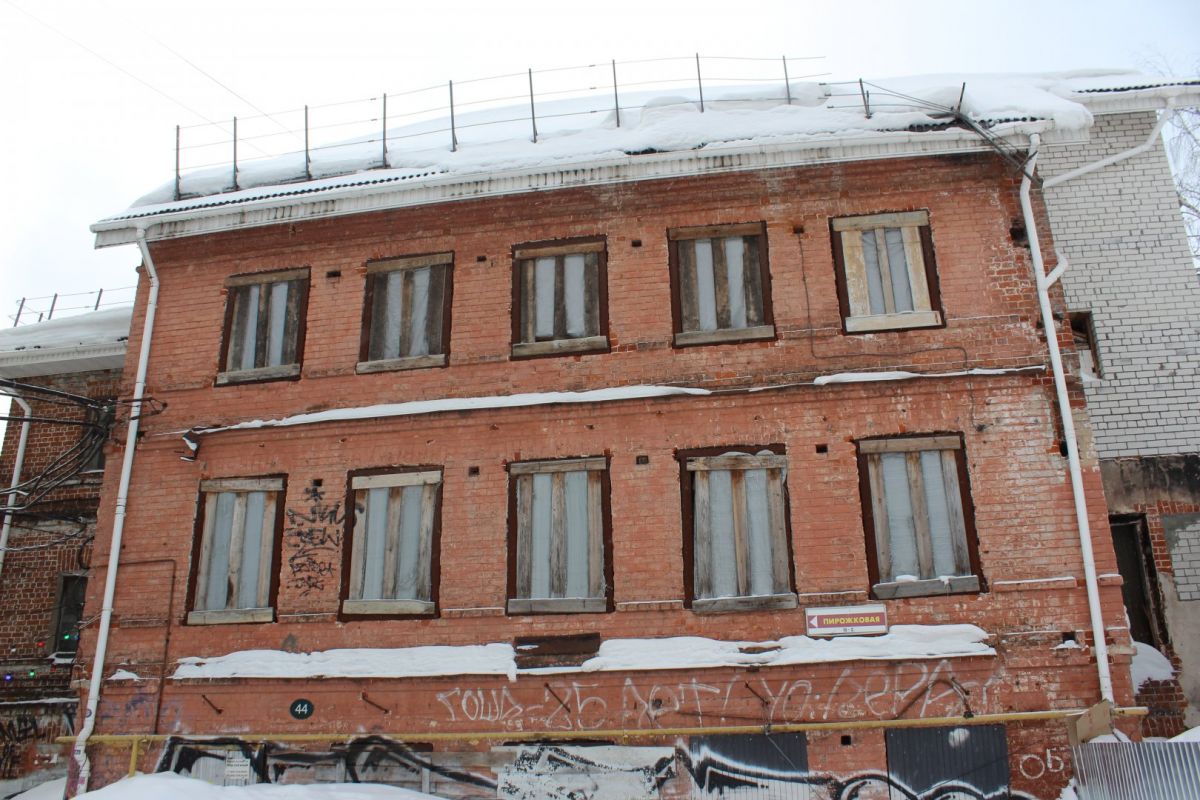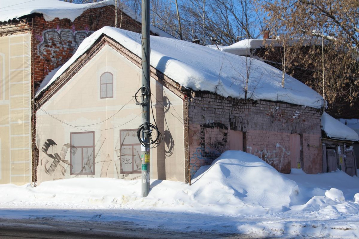 На улице Большой Печерской реквизируют дом № 34а литера В. Это кирпичное здание десятилетиями оставалось заброшенным и разрушалось на глазах у прохожих, пока его не завесили фальшфасадом. К слову, раньше на объекте можно было увидеть вывеску МЧС, а сейчас он принадлежит юрлицу.