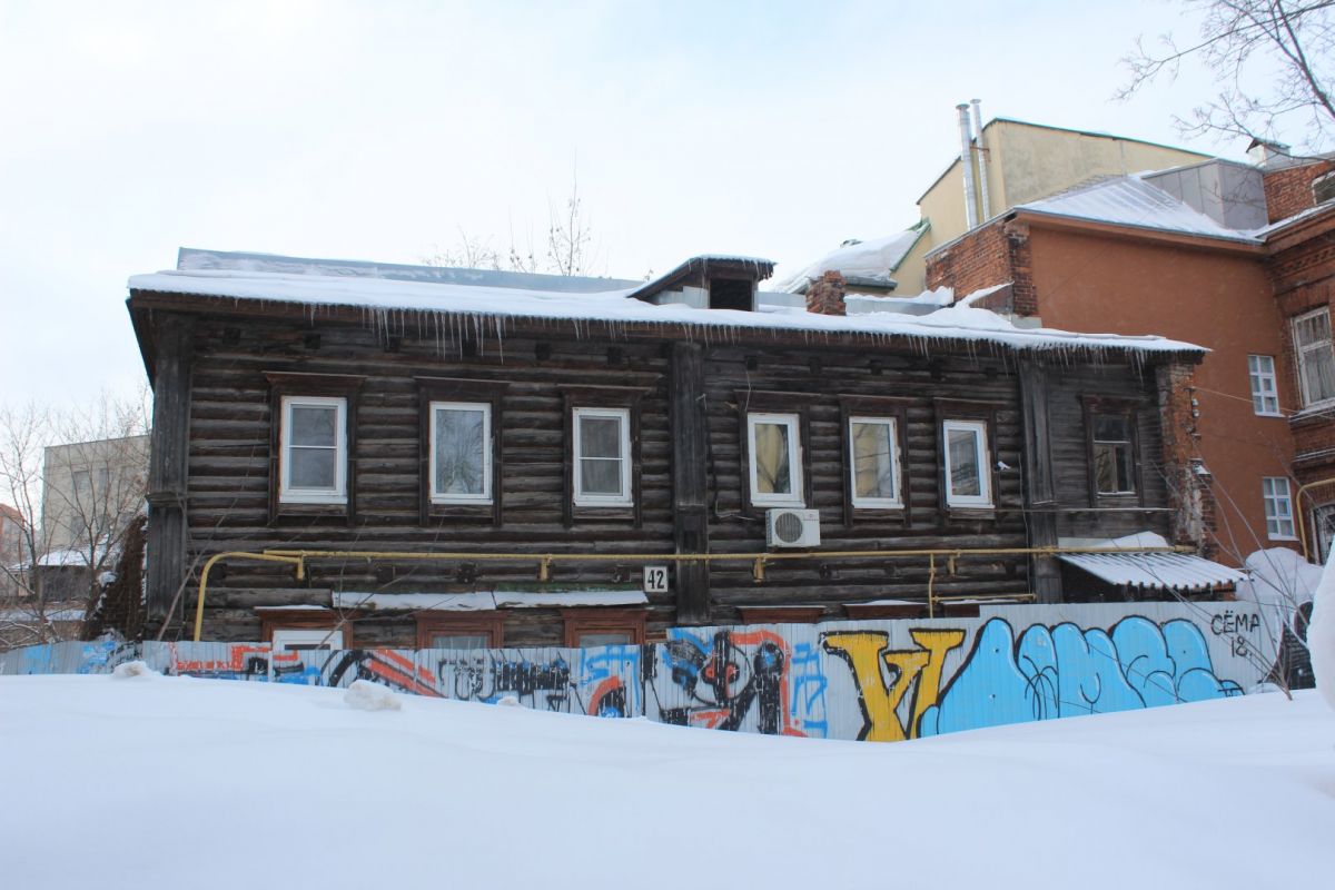 В восточной части городского центра изымают еще пять старинных зданий. В их числе памятник архитектуры, дом писателя Мельникова-Печерского на Ульянова, 42. В январе прошлого года деревянное здание пострадало от пожара — сейчас об этом напоминают черные подтеки на мансарде. В дальнейшем ОКН планируют восстановить.