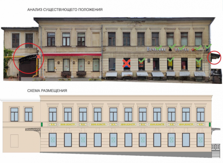 Информационные и рекламные конструкции не должны нарушать архитектурный облик зданий. Их разрешается оформлять в определенной цветовой гамме, соответствующей колористике и стилю фасадов. В надписях нельзя искажать буквы или иным образом затруднять прочтение текста. В свою очередь, подсветка должна быть белой — холодного или теплого оттенка.