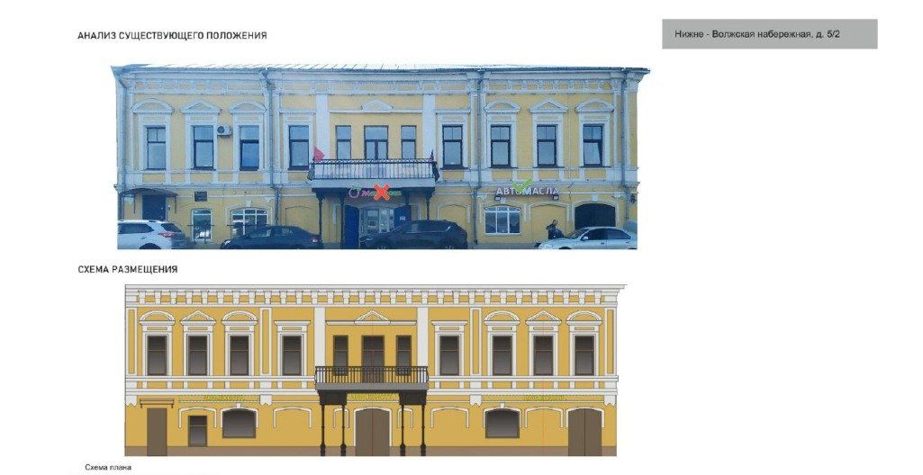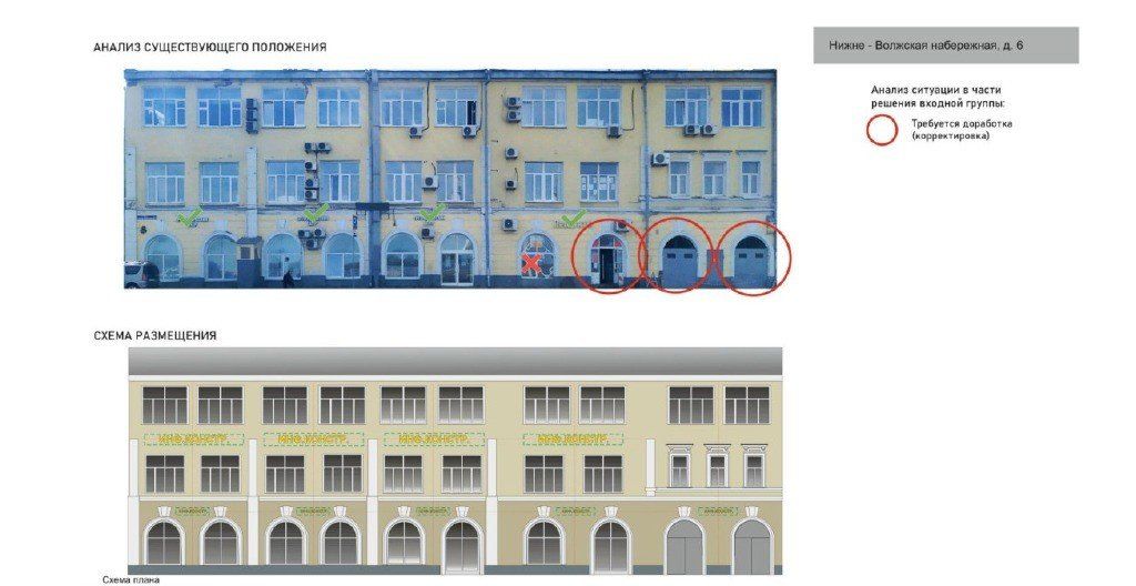 Дизайн-код охватывает территорию от Чкаловской лестницы до Канавинского моста, предыдущий его вариант был представлен в 2023 году. Навесы и козырьки на зданиях требуется располагать на одной оси со входами, непосредственно над ними. В рамках одного здания все козырьки должны иметь одинаковый облик: геометрию, габариты и материалы исполнения.