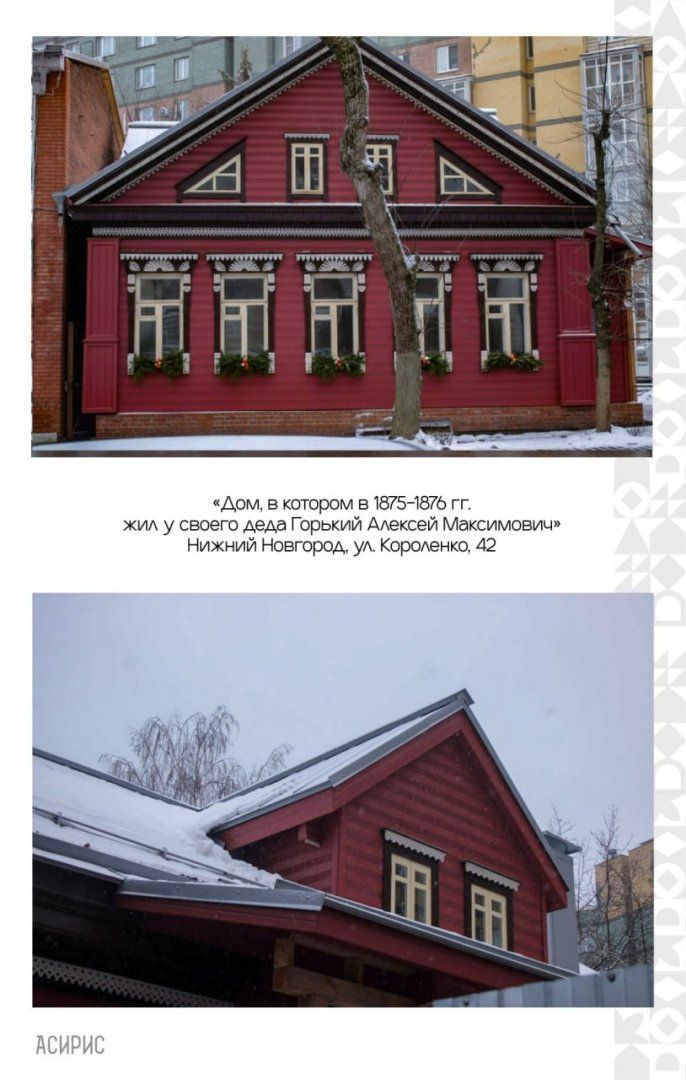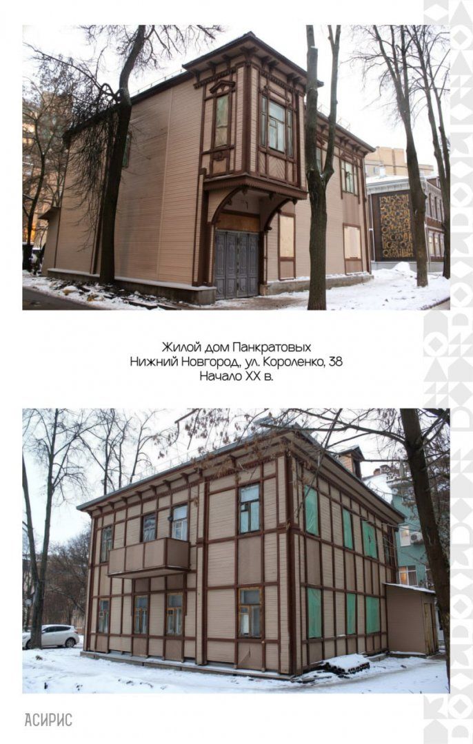 Также работы идут в соседнем доме № 38, где по историческим данным уже воссоздан балкон, и в доме № 42. Последний принадлежал дедушке Максима Горького и является ОКН федерального значения, там методом переборки отремонтирован деревянный сруб, восстановлены дверные блоки и входное крыльцо.