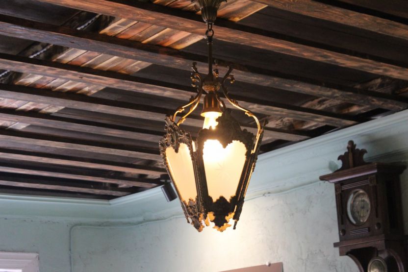 В здании отремонтировали протекающую крышу, восстановили полы, сохранили аутентичные стены. В одной из комнат потолок прогнил. Реставраторы заменили его, но оставили двухуровневый каркас без отделки, чтобы посетители могли увидеть, как строили потолки в XIX веке.