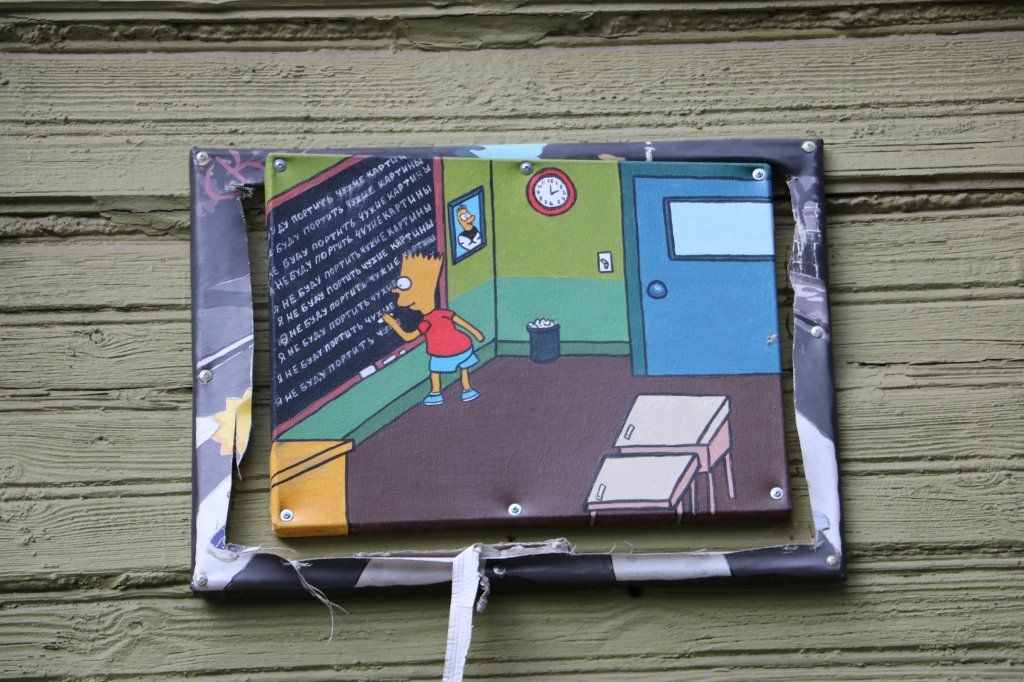 Стрит-арт по мотивам «Симпсонов» вновь украли в Студеном квартале Нижнего Новгорода. На нем была изображена одна из героинь мультсериала — Лиза: она запускала в небо воздушный шар. Пропажу третьей по счеты работы заметил корреспондент GIPERNN.RU.