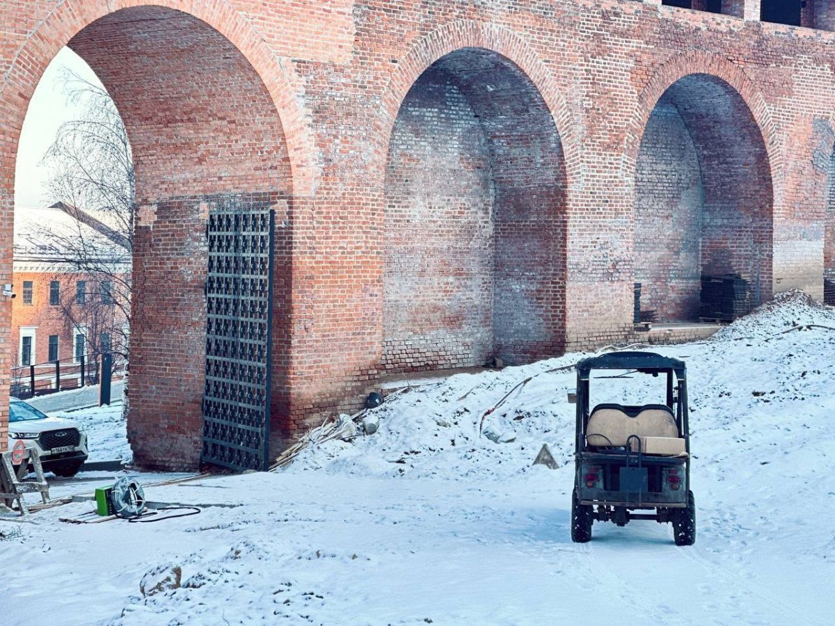 На территории между Ивановской и Борисоглебской башнями кремля появятся амфитеатр, цветники, аптекарский огород. Подрядчик завершит устройство подпорных стенок, лестниц, пешеходных дорожек, смонтирует системы автополива и установит малые архитектурные формы.
