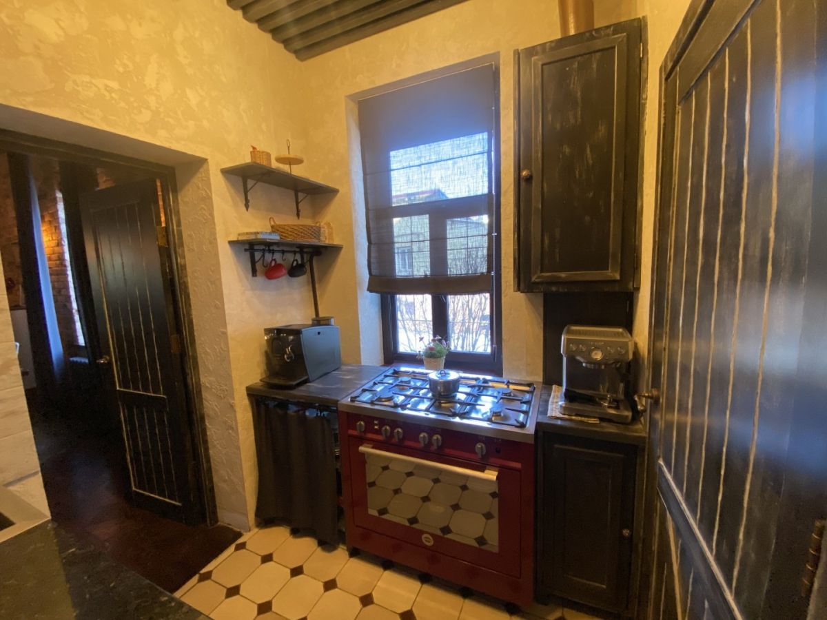 В санузле можно найти душевую кабину и сантехнику, стилизованную под старину. Коммуникации в квартире новые, отопление — индивидуальное. Старинный дом расположен в нескольких минутах ходьбы от Большой Покровской.