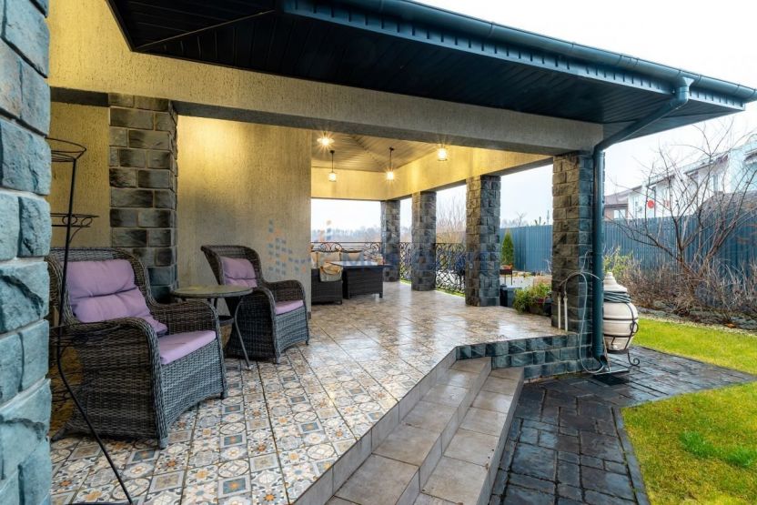 Кирпичный особняк построен в 2016 году, его площадь составляет около 390 «квадратов». Внутри выполнен дизайнерский ремонт в белых, светло-бежевых и коричневых оттенках. В поместье имеется банный комплекс с бассейном и хаммамом, но пока он находится на стадии предчистовой отделки.