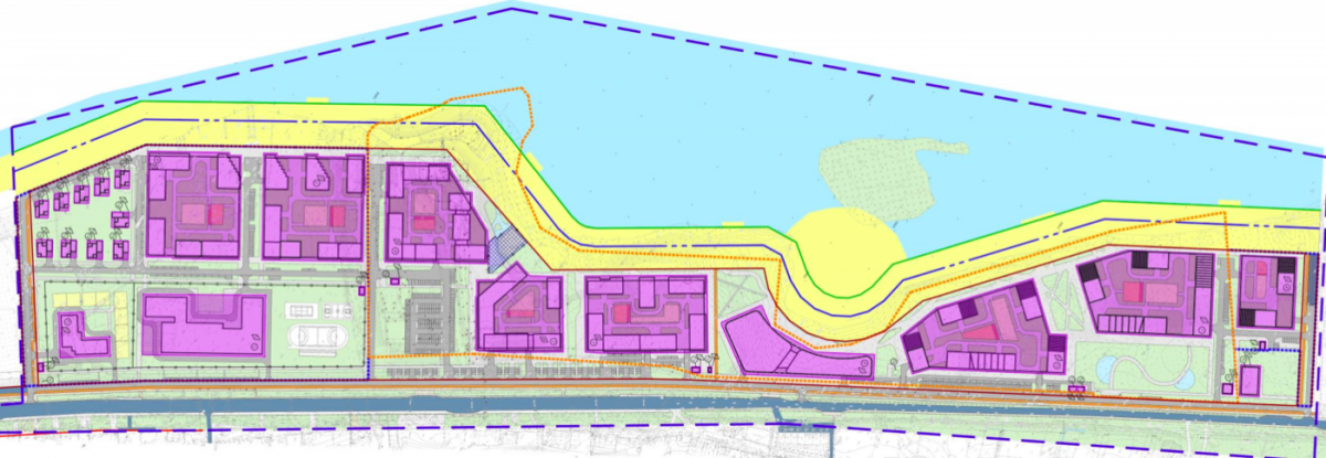 Развивать территорию планируется в одну очередь. Согласно обновленному проекту планировки, в течение четырех лет с даты заключения договора КРТ на Гребном канале появится гидротехническое сооружение, а также технологически связанные с ним сооружения инженерной защиты.