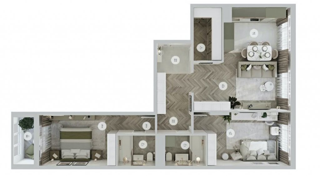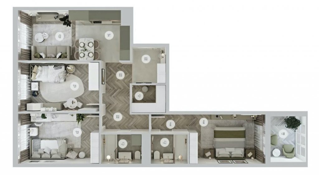 Продуманное зонирование. Важно, чтобы пространство грамотно делилось на функциональные части: для отдыха, работы, общения, сна, хранения. Рациональное зонирование делает жизнь более комфортной даже в небольших квартирах. Например, формат кухни-гостиной позволит собираться за столом с друзьями, а если зона готовки выполнена в виде ниши, как в ЖК «Подкова. Дом на Цветочной» или «Подкова Новая», то места будет еще больше.
