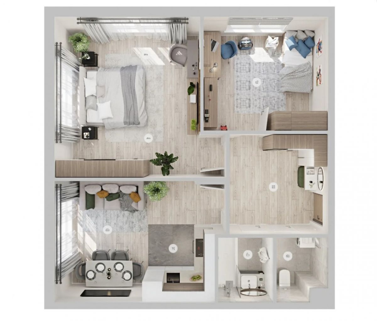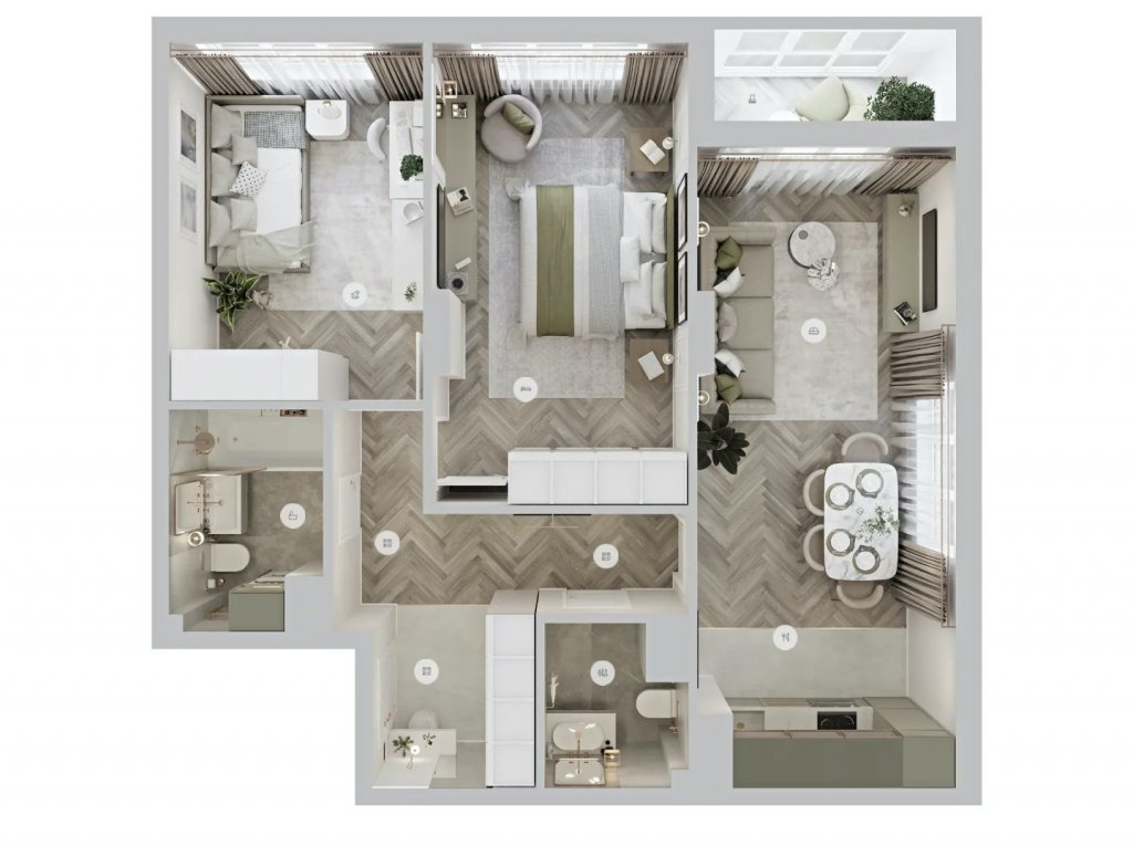 Два санузла. Еще одно незаменимое решение для больших семей. Дополнительный санузел поможет экономить время по утрам, когда родители торопятся на работу, а детям нужно собираться в школу. Кроме того, ванная в этом случае может стать приватным пространством, которым пользуются только хозяева, а для гостей всегда будет альтернатива. В ЖК «Подкова. Дом на Цветочной» и ЖК «Подкова на Волге» два санузла встречаются не только в трехкомнатных, но и в двухкомнатных квартирах.