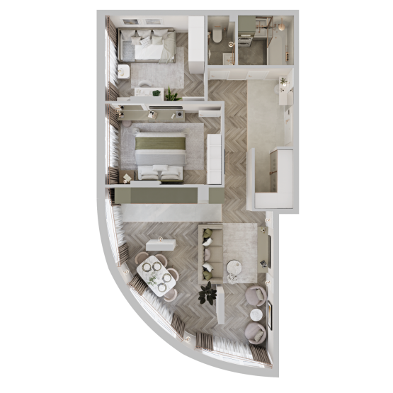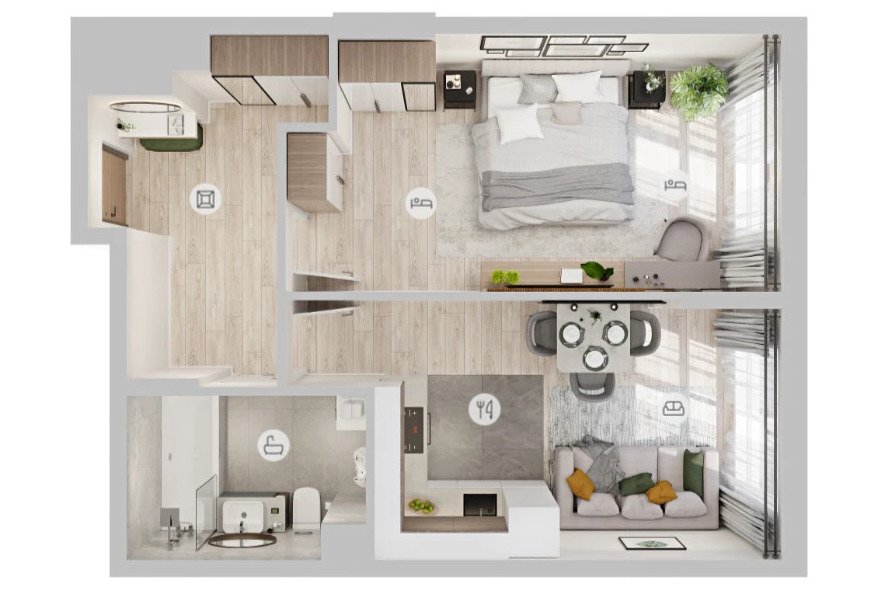 Эргономичность — это максимально эффективное использование площади, когда каждый метр «работает» на вас. В проектах ГК «Подкова» есть просторные квартиры, продуманные до мелочей, а есть компактные, но очень функциональные. Кроме того, застройщик предусмотрел европланировки, где кухня-гостиная становится центром притяжения, а остальные комнаты остаются приватными, позволяя рациональнее использовать пространство.